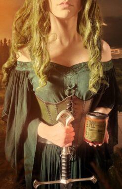 Має неземний вигляд, з великою кількістю витонченої вишивки у кельтському стилі, що огортає декольте та талію сукні